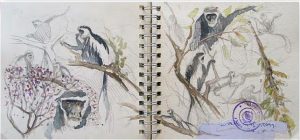 Neben den kleinformatigen Skizzenheften der Hahnemühle nutze ich diesmal auch ein 19 x 20 cm großes spiralgebundenes Carnet Aquarelle Skizzenbuch als visuelles Reisetagebuch, in dem ich meine persönlichen Erlebnisse in Skizzen, Aquarellen und Collagen umsetze und das ich hier in Auszügen präsentiere.